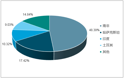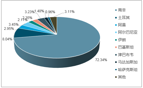 2017年我國鉻礦進(jìn)口數(shù)量國別占比