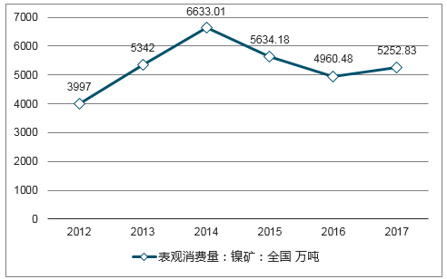 我國鎳礦表觀消費(fèi)量(萬噸)