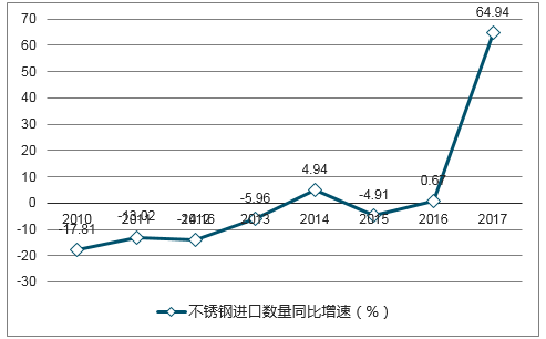 2009-2017年我國不銹鋼進(jìn)口數(shù)量同比變化(%)