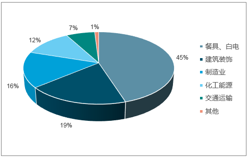 餐具、白電領(lǐng)域不銹鋼消費(fèi)占比約45%,建筑裝飾19%、制造業(yè)16%、化工能源12%、交通運(yùn)輸約7%。
