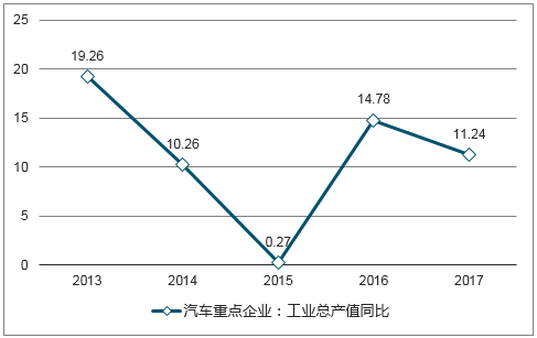 汽車重點(diǎn)企業(yè)工業(yè)總產(chǎn)值同比變化(%)