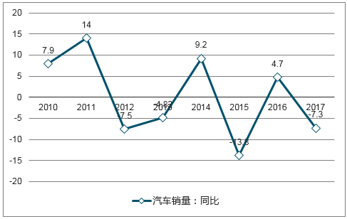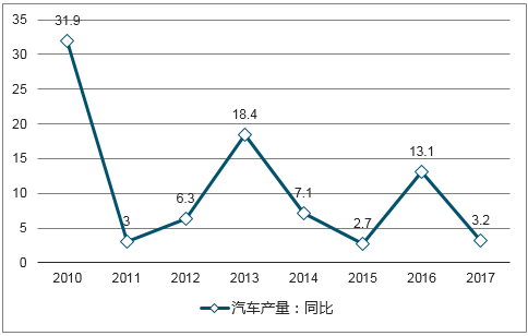 2008年-2017年汽車產(chǎn)量同比變化(%)