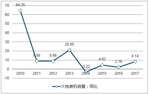 2009年-2017年國家電力火電裝機(jī)容量同比變化(%)
