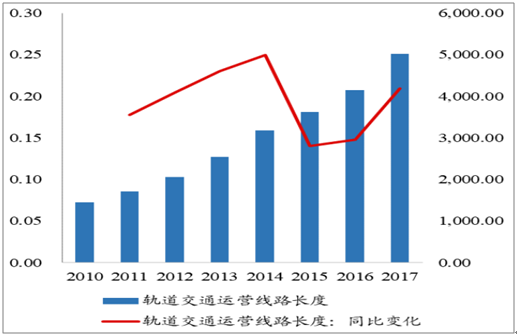 我國城市軌道交通運(yùn)營里程數(shù)同比變化(%)